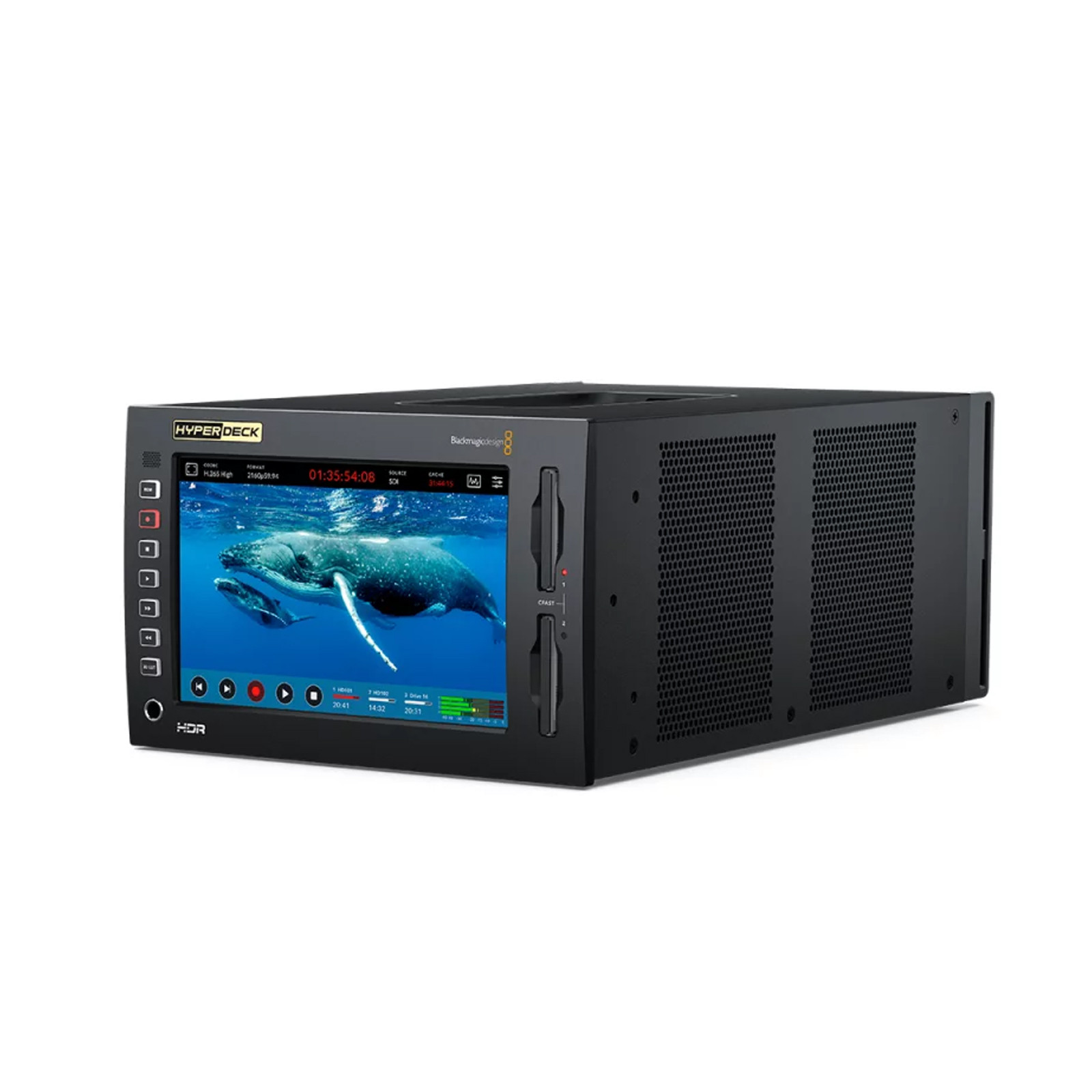 Der Blackmagic HyperDeck Extreme 4K HDR vereint Zuverlässigkeit mit diversen Innovationen. Er ermöglicht das Speichern von nativen 4K-Bildern in platzsparenden H.265-Dateien und verfügt über einen optionalen internen Zwischenspeicher, 3D-LUTs und HDR-Support für HDR. Über den leistungsfähigen Ultra-HD-Touchscreen können Aufzeichnungen verfolgt und die Rekorder-Funktionen gesteuert werden. Somit eignet sich der HyperDeck Extreme hervorragend für Liveproduktionen und Digital Signage.