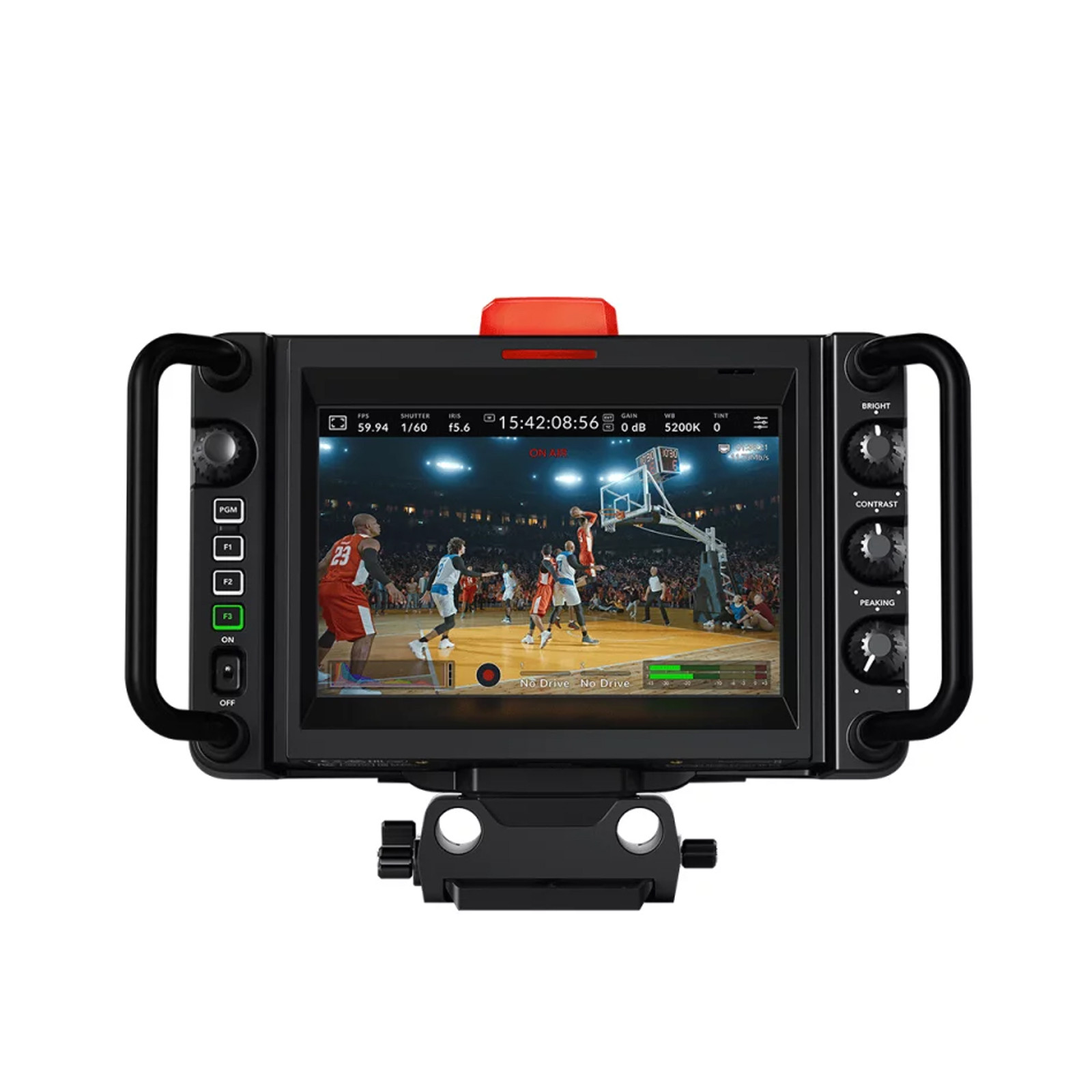 - Externe Steuerung: Blackmagic Zoom Demand und Blackmagic Focus Demand zur Steuerung von Kamera und Objektiv vom Stativgriff aus.